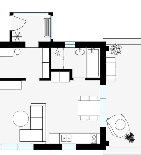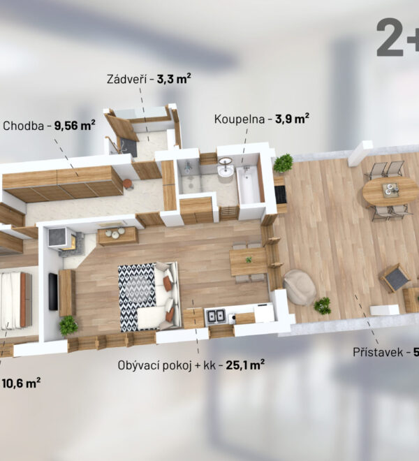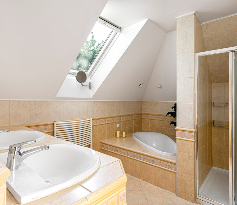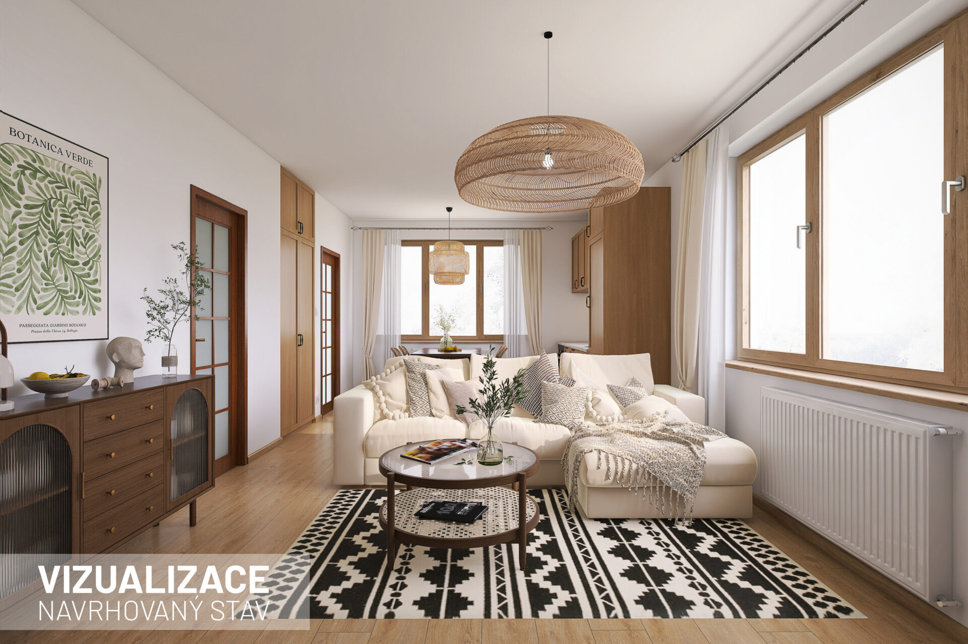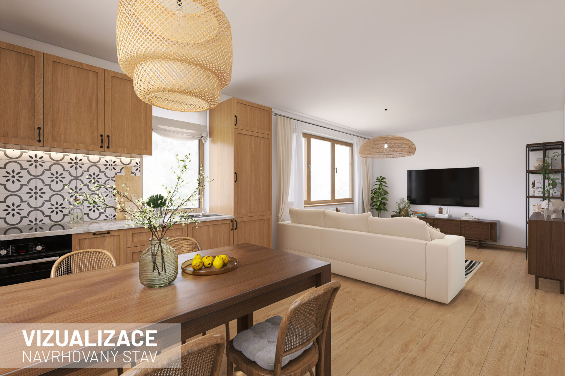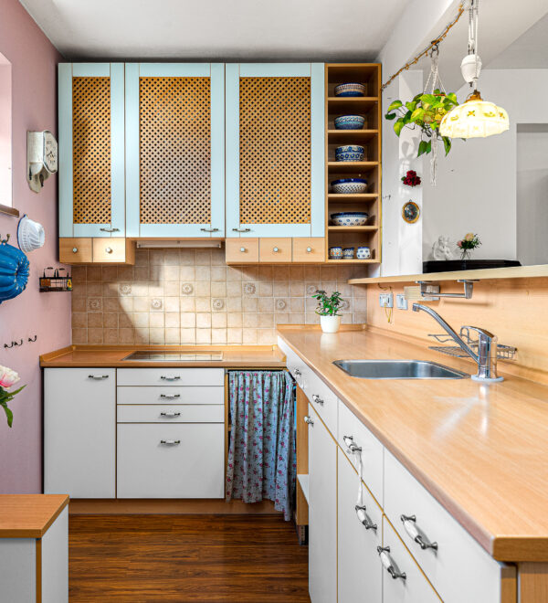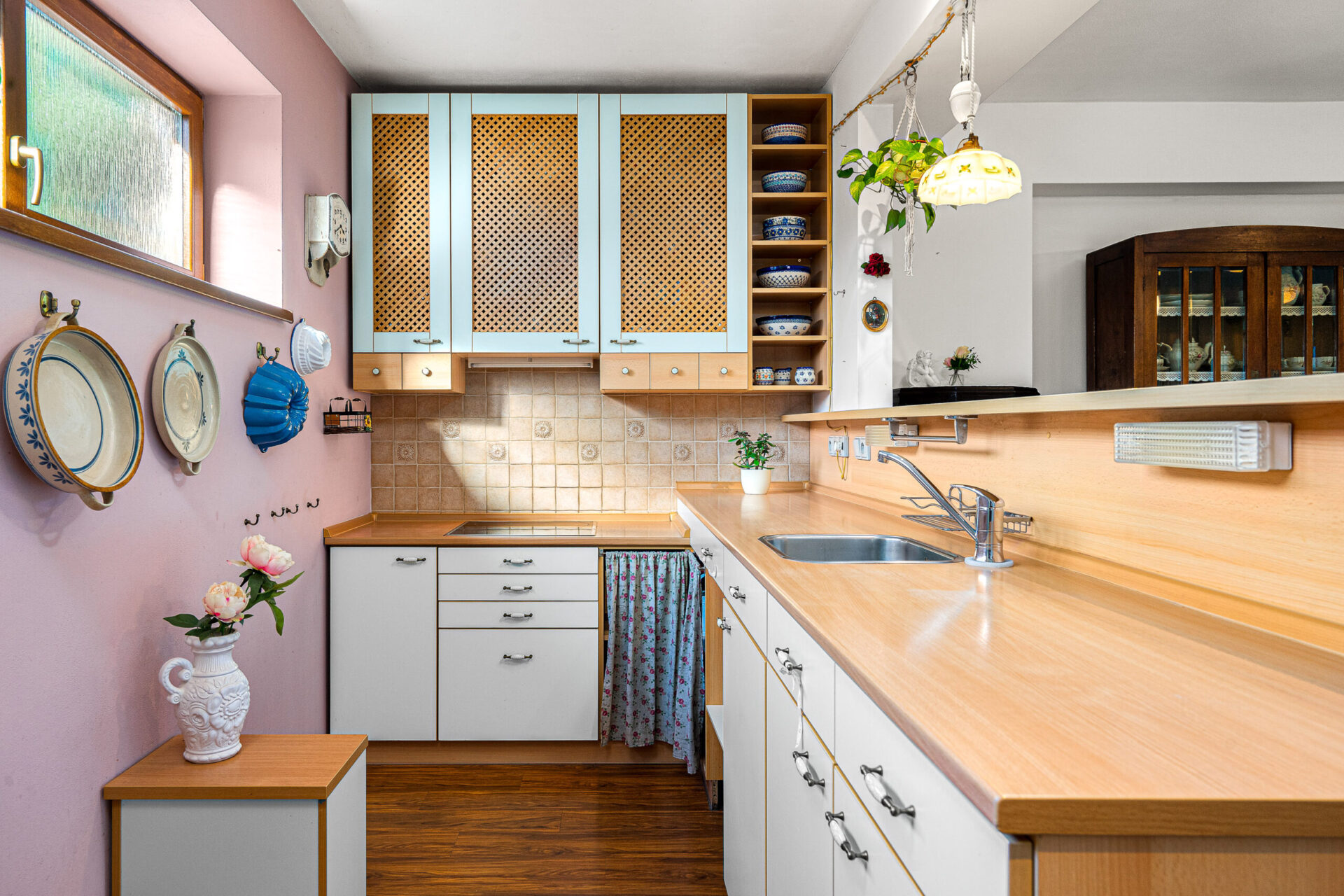 Dům o dispozici 6+kk a užitné ploše 190 m² byl postaven s ohledem na potřeby rodiny. V přízemí vás uvítá prostorný obývací pokoj s kachlovými kamny, navrženými na zakázku, propojený s kuchyňským koutem. Odtud vede vstup přímo na zahradu. Dále se zde nachází pracovna, koupelna se sprchovým koutem a vstupní hala s vestavěnými skříněmi.
