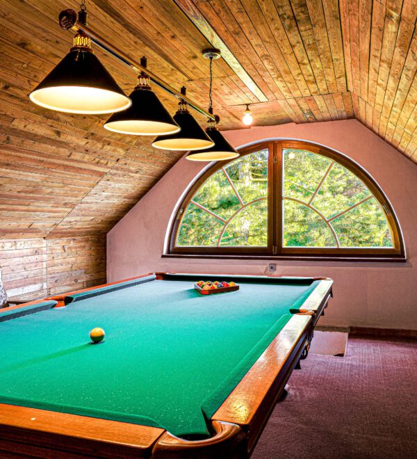 Ve stylové klubovně se snoubí atmosféra relaxace s příležitostí k zábavě. Dominantou prostoru je biliardový stůl, ideální pro přátelské partie s rodinou nebo s přáteli.