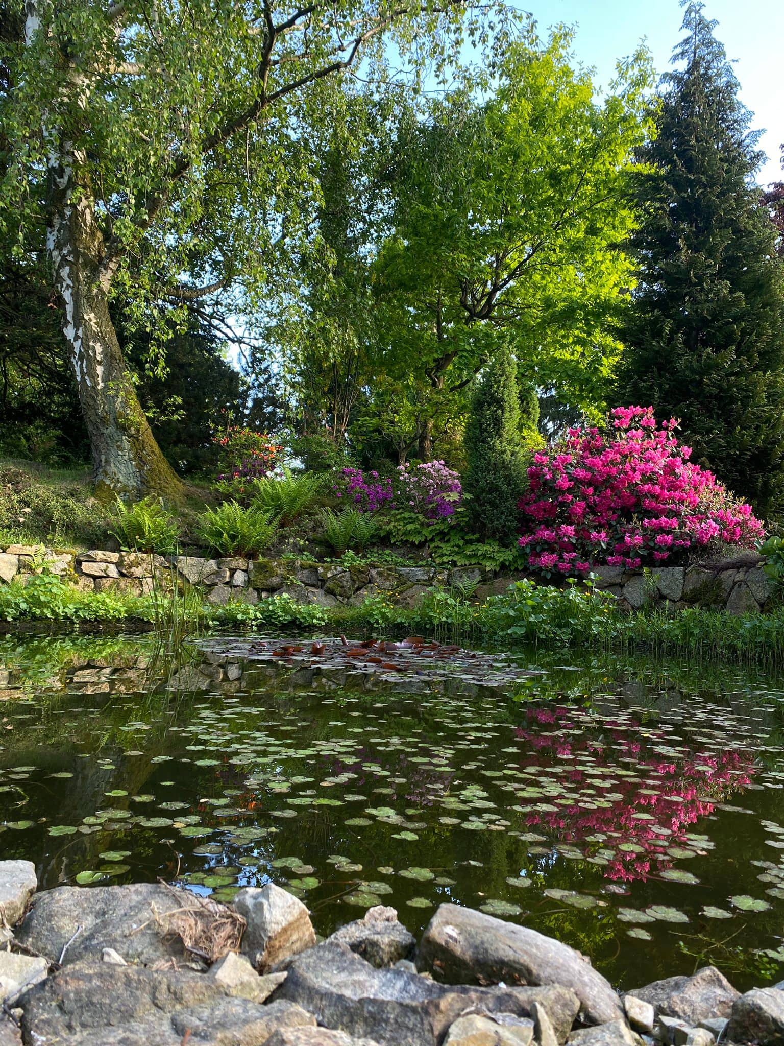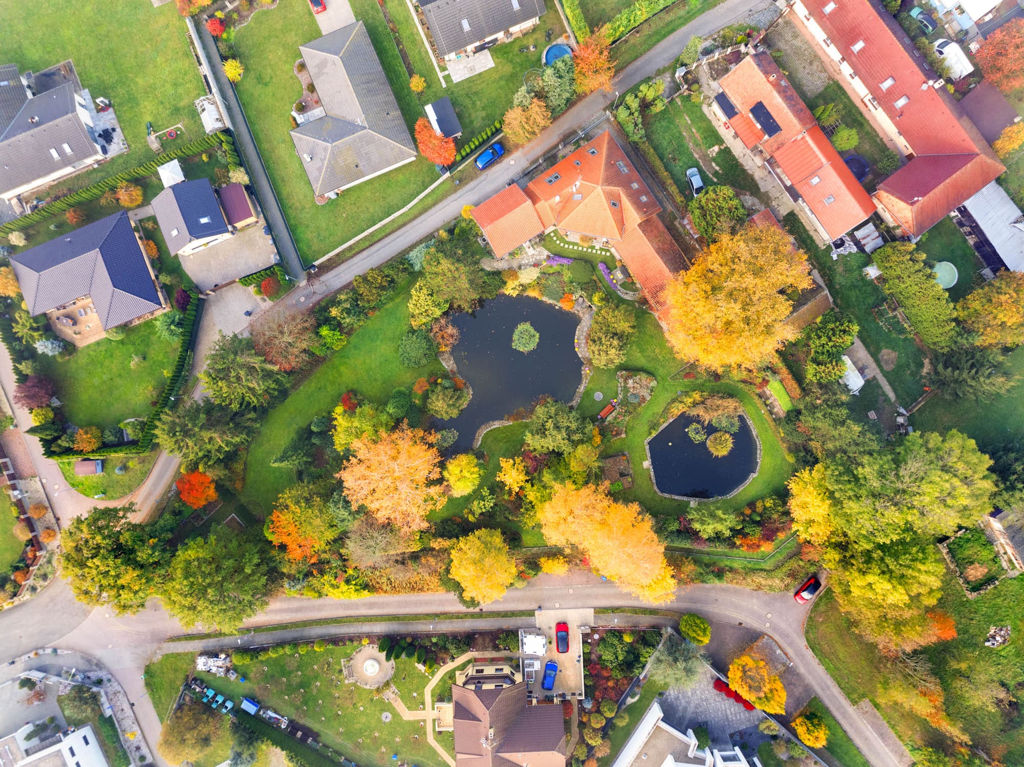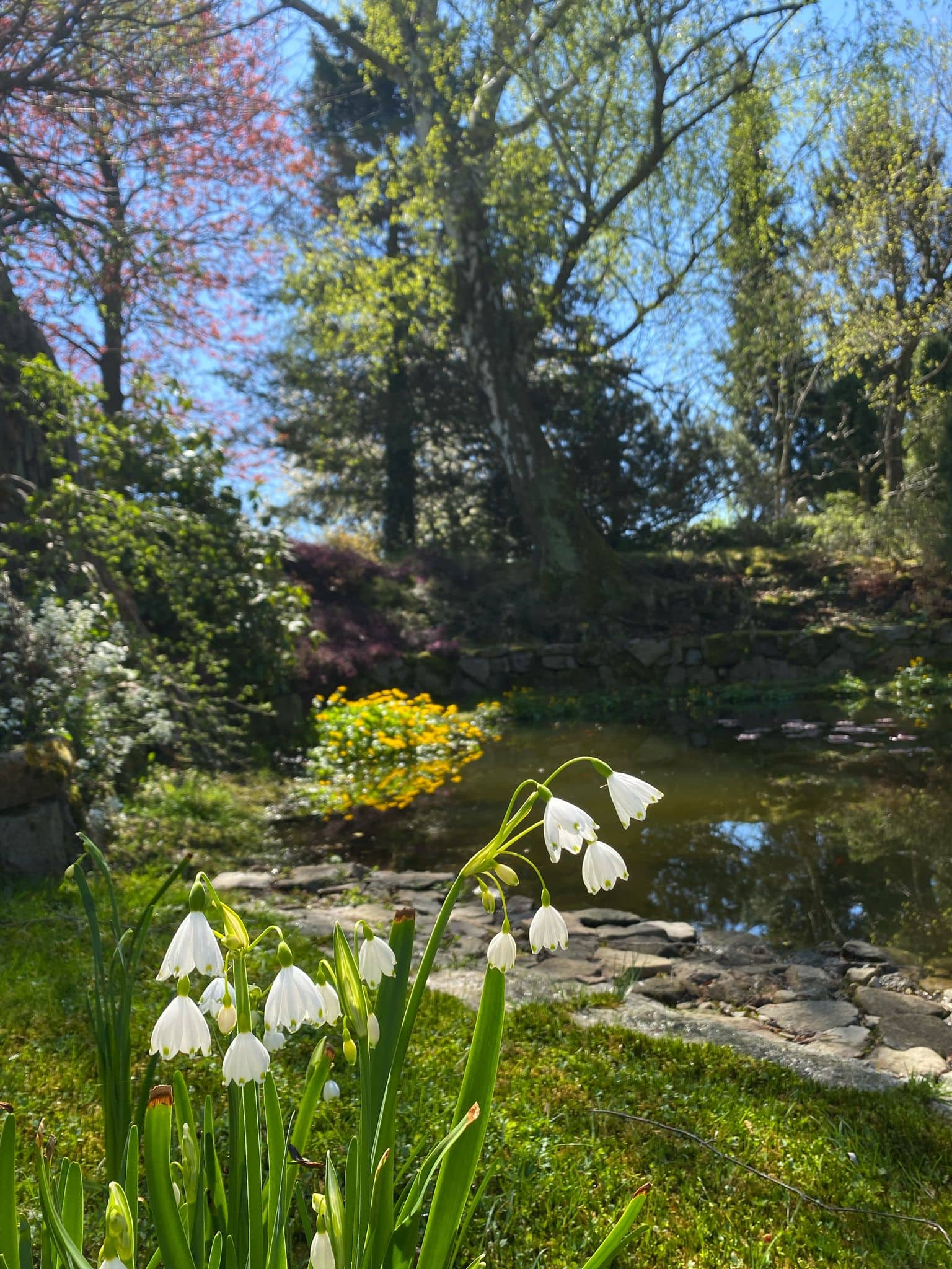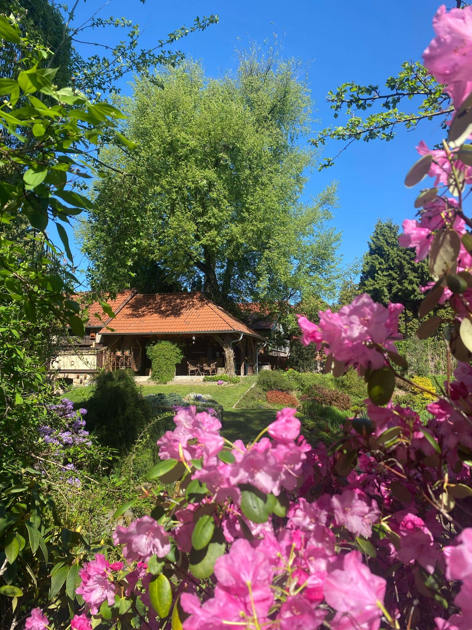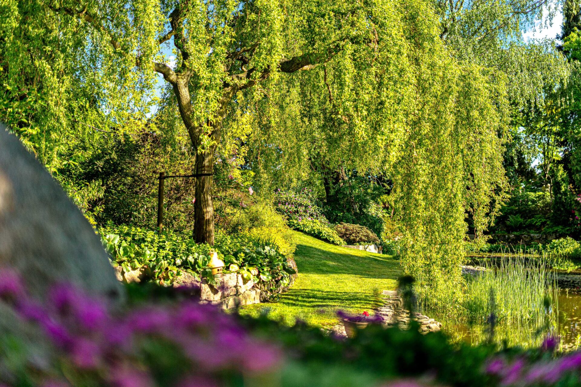 Samotná dechberoucí okrasná zahrada se vzrostlými stromy a dvěma jezírky, důmyslně založená tak, aby poskytovala maximální soukromí, doslova vybízí k odpočinku nebo k objevování skrytých zákoutí. Najdete zde prostor i pro pěstování vlastní zeleniny. A jste-li milovníky přírody, jistě vás potěší i množství živočichů, kteří zde našli své útočiště. V jarních a letních měsících se můžete zaposlouchat do ptačího zpěvu či milostného kuňkání žab. Budete-li mít štěstí, spatříte zde i ledňáčka či volavku.