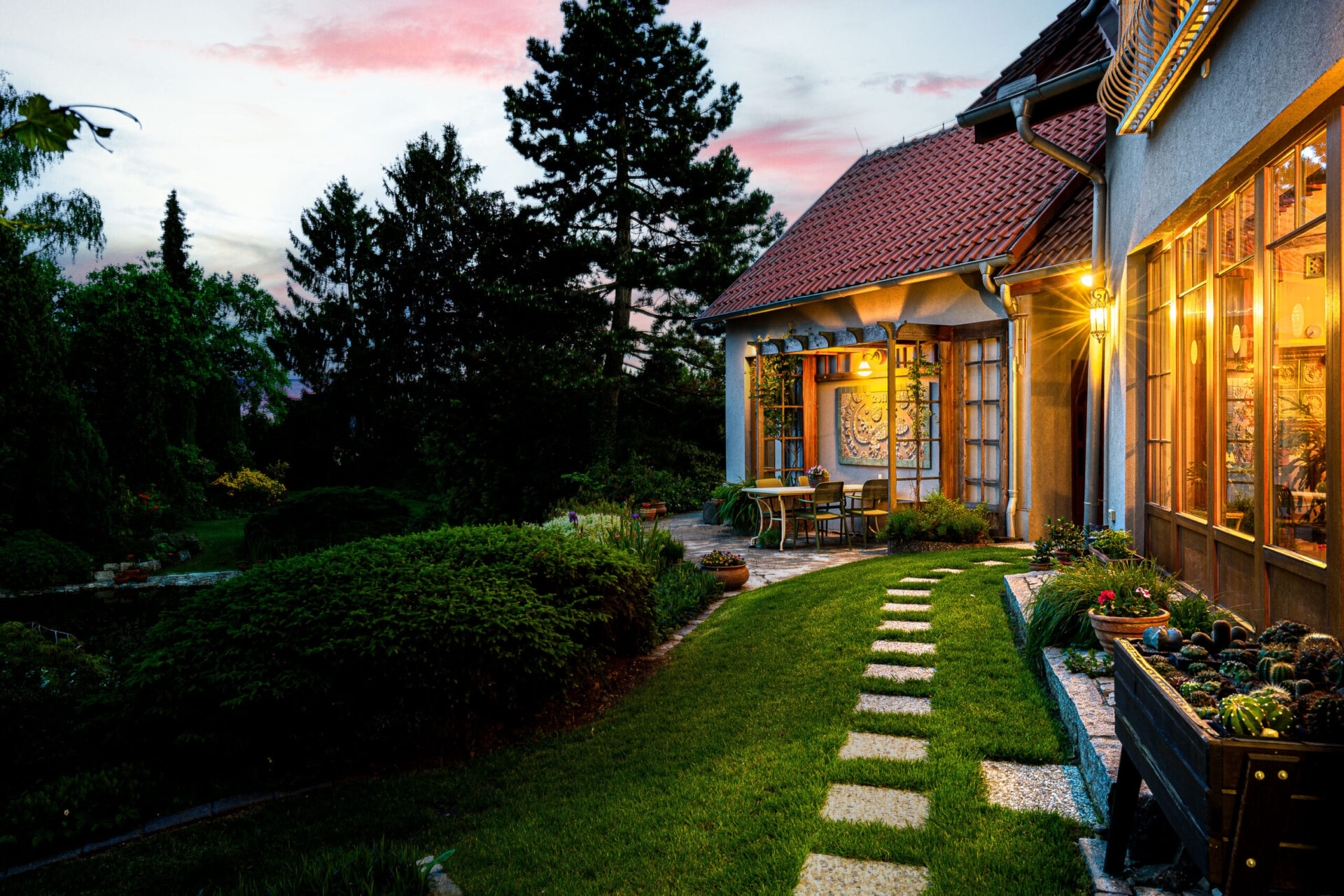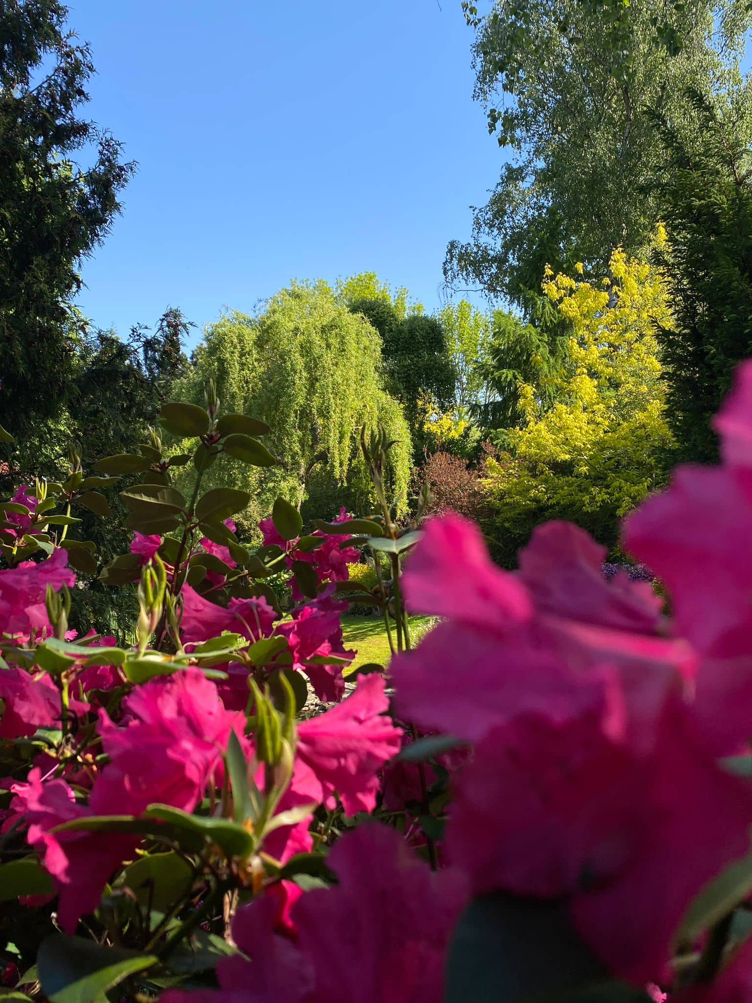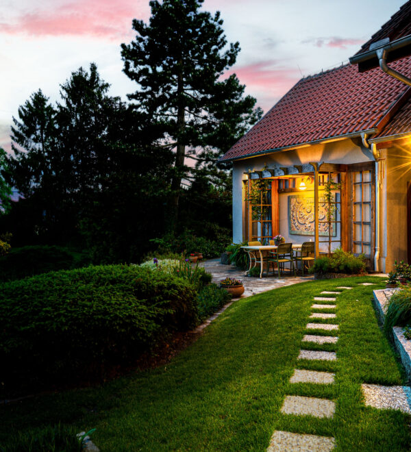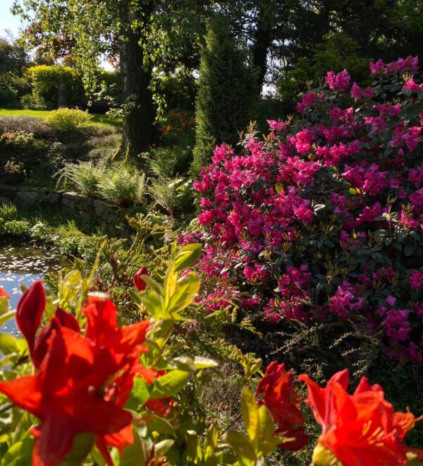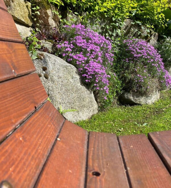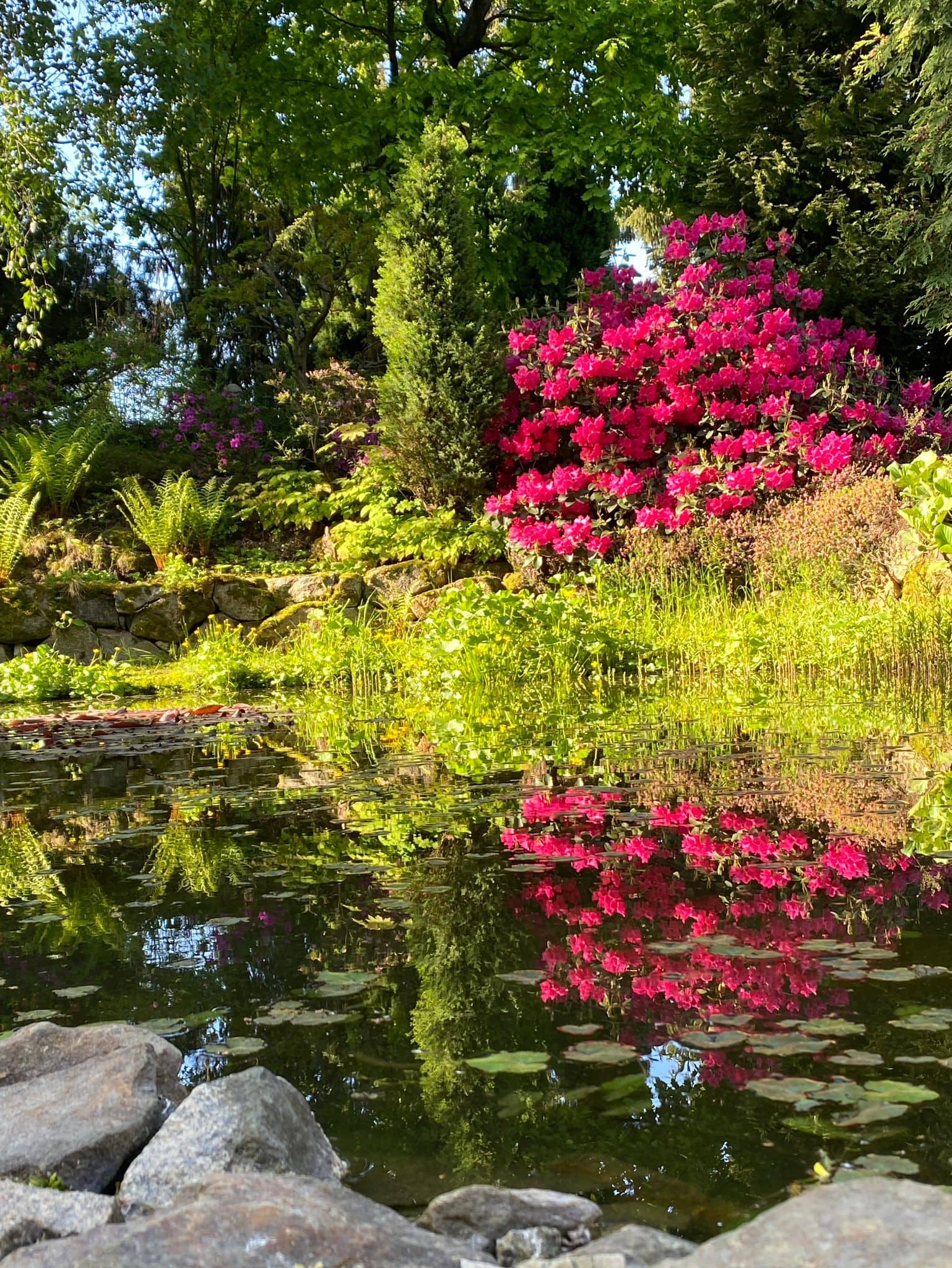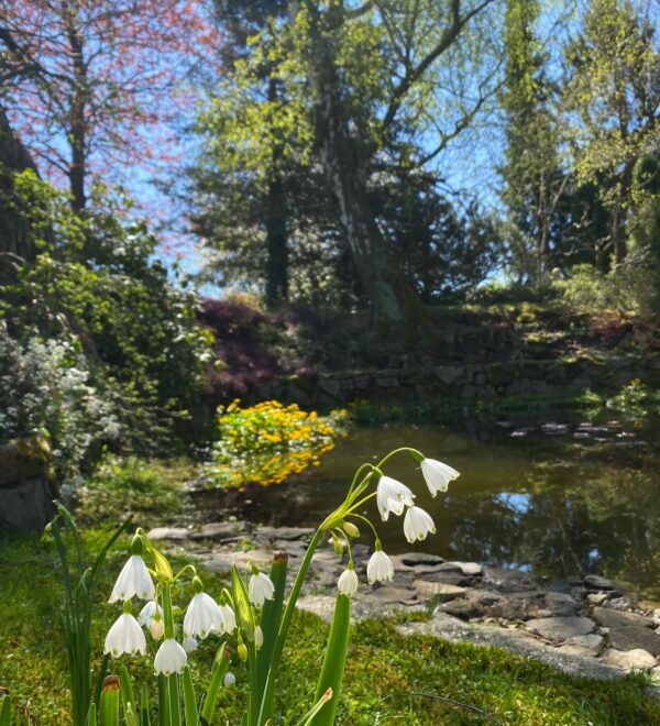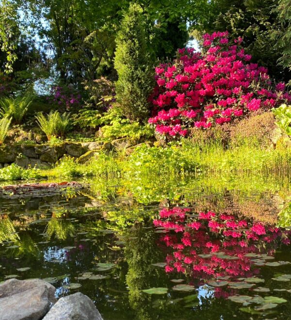 Samotná dechberoucí okrasná zahrada se vzrostlými stromy a dvěma jezírky, důmyslně založená tak, aby poskytovala maximální soukromí, doslova vybízí k odpočinku nebo k objevování skrytých zákoutí. Najdete zde prostor i pro pěstování vlastní zeleniny. A jste-li milovníky přírody, jistě vás potěší i množství živočichů, kteří zde našli své útočiště. V jarních a letních měsících se můžete zaposlouchat do ptačího zpěvu či milostného kuňkání žab. Budete-li mít štěstí, spatříte zde i ledňáčka či volavku.