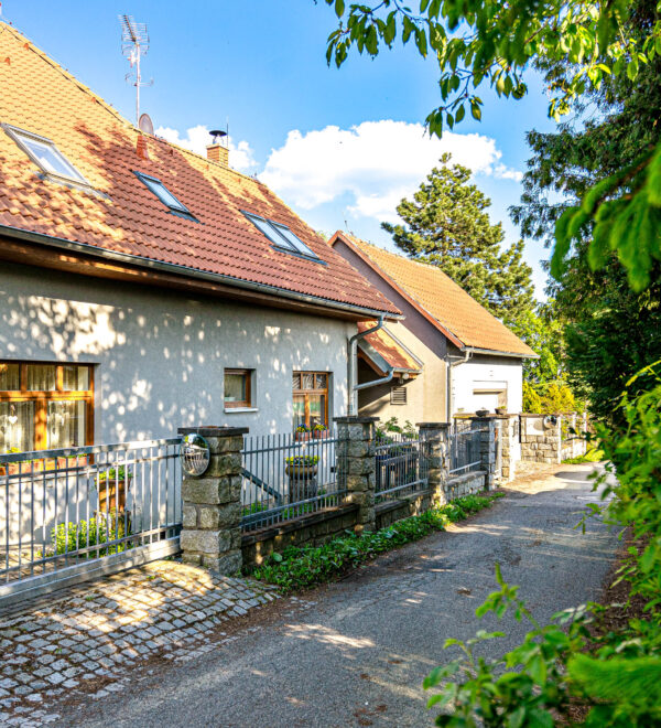 K domu patří garáž pro jedno vozidlo (24 m²) s horní společenskou místností vybavenou kulečníkem (12 m²). Součástí nemovitosti je také stodola se dvěma místnostmi a užitnou plochou cca 50 m² s možností rozšíření obytné plochy díky platnému stavebnímu povolení.
