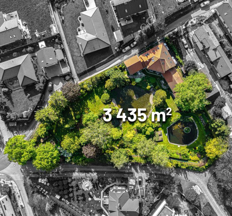 Celková plocha pozemku činí 3435 m², z toho zastavěná plocha a nádvoří představují 556 m². Rozsáhlá okrasná zahrada nabízí dokonalé soukromí a prostor pro relaxaci i zahradničení.