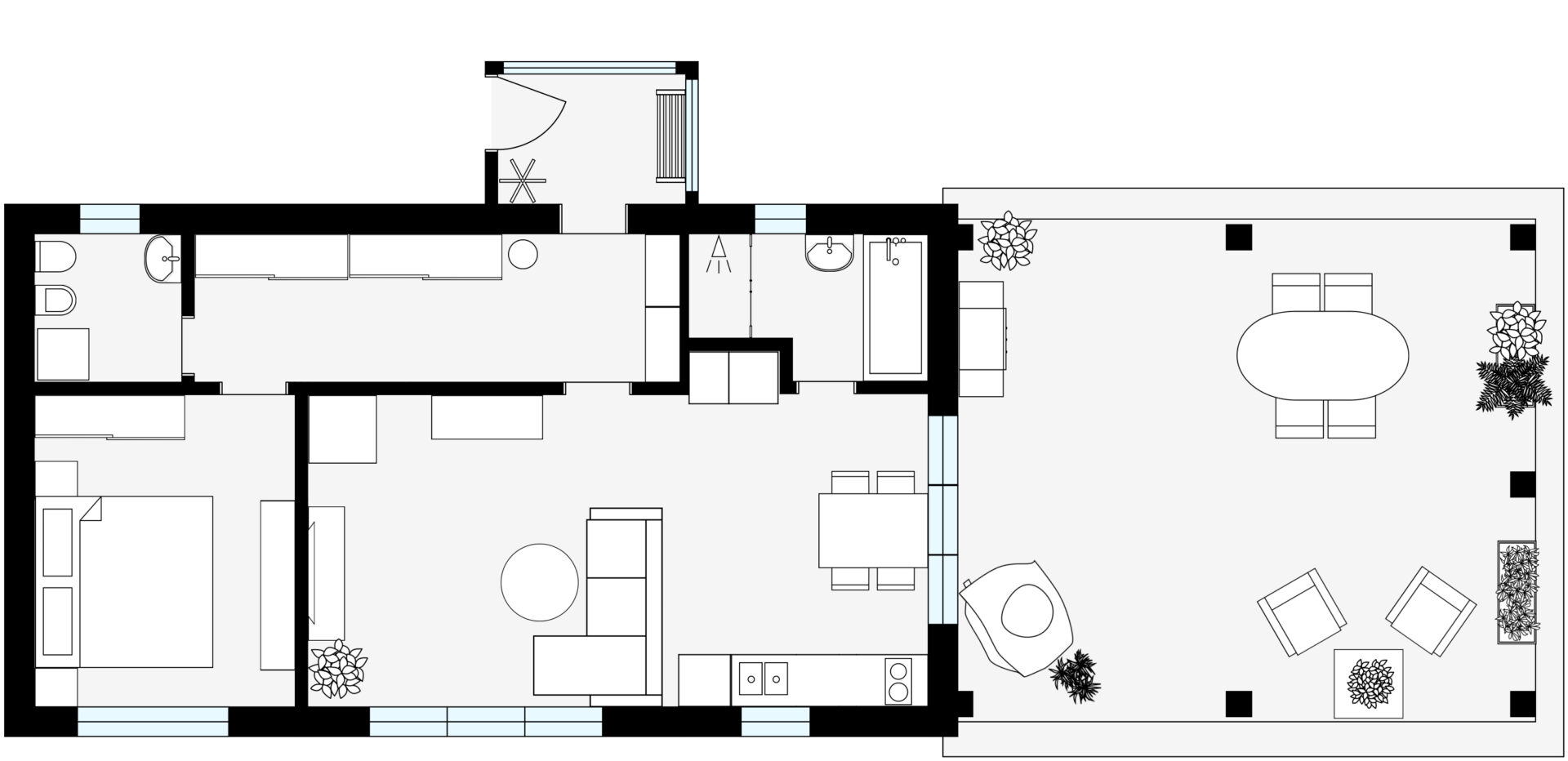Prostorná pergola je ideálním místem pro rodinné posezení, oslavy a grilování.